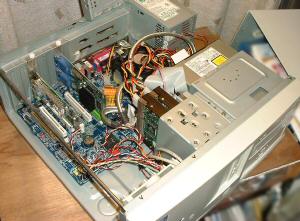 衝動買い的にマザーボードとCPUを購入してしまった。ギガバイト社製のintel865Gチップセット搭載のGA-8IG1000-Gと、Pentium4 2.0AG。CPUは中古だが。 |