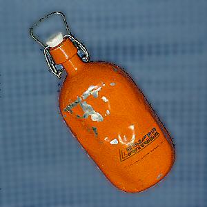 口はスチールワイヤーのバネ力で止めるオーソドックスなもの。ペコペコになっているのは落としたり踏んづけたりしたほか、冬山で内部の水蒸気が収縮した跡でもある。 こんなになっても使っているというのは、別に愛着があるからではない。こういうタイプの水筒がなかなか手に入らないからである。いま町中で売られているのはステンレスの魔法瓶タイプか、樹脂製のいわゆるスクイズボトルばかり。たまに普通の水筒があってもネジ式キャップだ。 登山専門店に行けばこの手のものがあるにはあるのだが、なんとなく大きさや形が気に入らない。 本当に頑丈で実用上問題はなく、無理して買い換えることもないかと思ってしまう。・・・これって結局、愛着なのかな? |