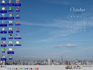 最近、メインマシンの壁紙にniftyのカレンダー壁紙を使っている。壁紙のイメージに合わせて配色も毎月変えるのだが、何か最近のウィルスにはデスクトップのスクリーンショットを勝手にWWWサイトに送信して衆人の目にさらすのがあるらしいので、万一の時に恥ずかしくないような画面にしておきたいものである(??)。 |