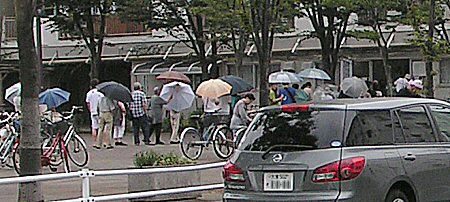 なんだか今月は更新が遅れてしまったが。 写真は先日の衆議院選挙で、ぼくの家の前に開かれた投票所の風景である。こんなのは初めて見た。 雨が降っているのにもかかわらず、みんな傘を差してずらっと並んでいる。思えばここはぼくが人生で最初に投票をした会場なのだが、これまでこんなに並んだことは一度もない。 列にいた人たちも皆一様に驚いていた。 写真にはちゃんと写っていないが、このあたり路上駐車を含めて自動車と自転車であふれてもいた。 選挙結果はもちろん予想通りの民主党圧勝だったが、前回の小泉郵政選挙ほどでもないにしても、なんとなく恐ろしい感じがする。 こんなふうに「風」に流されて政治が作られて行ってよいものなのだろうか。 この前の小泉チルドレンの代わりに、今回は小沢ガールズが大量に出現したそうだが、昔の社会党の土井チルドレンがそれなりに見識を持った政治の「プロ」を目指していたのに対して、最近の「チルドレン」は本当に志を持っているのかどうかさえ疑わしい、ただの頭数のようなところがある。 もちろん、そんなことを言えば自民党議員の大半も、別に理想に燃えて政治家になっているのではないわけで、本音は権力と利権目当てでしかなく、国会では自分の見識など皆無、ただ派閥の決定に従って行動するだけだから、第二自民党である民主党にそんなことを求めても無理な話なのかもしれない。 |