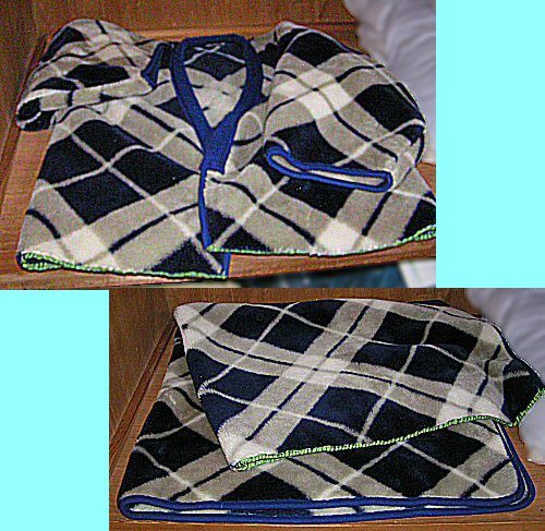 ・かい巻き(父の遺品) 年末に使わない布団などを整理していたら父が着ていた安物のかい巻きが出てきた。絶対に使わないので一度は捨てようと思ったが、思い直して腰のあたりで切断し、パソコン仕事をするときに着るはんてんと膝掛けにしてみた。 切断面はパイアステープがなかったので手元にあったリボンを代用。今年の冬はたぶんこれをずっと使うことになりそう。 ![]() |