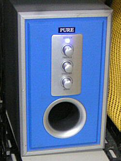 ・中古サブウーファー(アンプ付き) 「PURE」 ![]() しかし、このアンプがたぶん廃熱の問題だと思うが突然ブワブワ言い出して使い物にならなくなってしまった。それで近くのハードオフなどを回って手頃なアンプがないか探したところ、5.1chスピーカーシステムの一部と思われるアンプ付きのサブウーファーが500円で売られているのを発見。 |