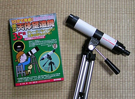 先月は意に反して結果的にずいぶん散在することになってしまった。 と言うのは、購入後2年半のパナソニックのHD-DVDハイビジョンレコーダーDMR-XP10のDVDドライブが壊れてしまったからだ。書き込みはおろか市販のDVDビデオも認識しない。はじめはレコーダーの表示を信じて、使っているメディアの不良かとも思っていたのだが… 他のものを買う前に壊れていれば買い物はもっと控えていはずだがタイミングが悪かった。 正直言って、壊れたレコーダー自体はコジマの5年保証に入っており、今回出張修理でドライブを換装してもらった費用2万円強は結果的に戻ってきたのだが、これが直らない可能性も含めて急遽代替機を購入したため出費が増えてしまったのだ。日常で使っているものが使えなくなるという事態にちょっとあせって、一応全く同じ機種をネットオークションで買ってしまった。 ところが、実はこのオークションで買った機体もどうもDVDドライブの動きが怪しい。VRモードはなんとか使えているが、DVD-VIDEOモードでハードディスクからダビングしようとするとメディアが不良と判断されてしまうのだ。 修理に来た人はDVDドライブの使いすぎではと言っていたが、こうなってくるとこの機種のDVDドライブの耐久性が低いのでは、と思わざるを得ない。 もちろん保証期間中は問題なく動作したから、悪質だというわけではないが、しかし、こちらは地デジに対応させようと思って買っているのに完全地デジ化前に壊れてしまうと言うのでは、ちょっとどうなんだと思ってしまう。 オークションで買った中古の方も修理が必要となると、これは新品を買った方が安くなってしまうわけで、ちょっとヘコむ。 ついでに言うと、さらにこの機体を増設して使わないともったいないので、新たに接続ケーブル一式を近くの石丸電気で買ったら1万円近くになってしまった。なんと言ったら良いやら。 と、実はここまでが前振りで、ここから本題。 他に何を買ったかというと、デジタル一眼レフカメラである。写真は載せないけれどキャノンのEOS-Kiss デジタルNの中古本体を、やはりオークションで2万円ほどで入手した。 デジタルカメラの世界ではかなり古い機種になるのかもしれないが、ぼくとしては満足なカメラだ。レンズの方は以前から持っているフィルムカメラの方のEOS-Kissから流用する。 なぜカメラを買いたくなったかというと、また少し自然の写真を撮りたくなってきたからだ。今おもに使っているカメラはミノルタのDIMAGE-Z1で、これもかなりよいカメラだが、いかんせんインスタントカメラの制約がある。かと言って、フィルム一眼を使うとなると現像代がバカ高い。やはりデジタルにした方が結果的に安いだろうという判断だ。 それではなぜ自然の写真を撮りたくなったかというと… 天体望遠鏡を買ったためである。 冒頭の写真がその望遠鏡。「星の手帖社/組立天体望遠鏡35倍」(2,880円)である。 |