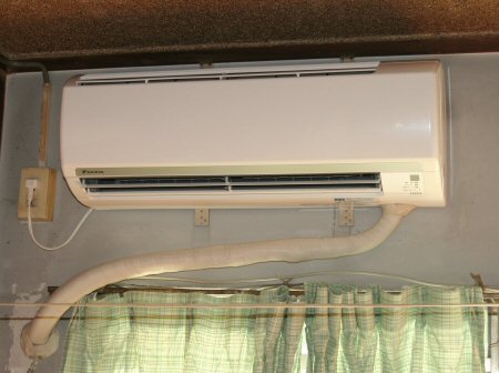 ところで、エアコンから水が出てきた理由だが、原因を究明するのが目的ではないので特に調べたわけではないが、業者の人がよくある話として言っていたのは、エアコンの取り付け角度の問題。 写真を見てもらえばわかるとおり、以前の工事では排水ダクトが室内機の中を通してある。(矢印B) この場合、室内機が水の流れる方に傾いていればよいが、逆になると水が逆流してしまうとのこと。見た目は悪いが取り付け時に少し傾けて付けるとか、今回うちでやってもらったように、排水ダクトを外側を回して直接室外に流すようにしておくと、こうしたトラブルが少なくなるのだそうだ。 ちなみに今回購入したエアコンはダイキンのAN28LPS-Wという機種で、そういう次第で別段性能を考えて選んでいる余裕がなかったのだが、まあまあ性能は良いみたい。 でも、やっぱり高かったかなあ。 |